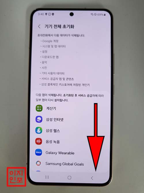 공장초기화를 진행하고 나면 다시 되돌릴 수 없습니다. 초기화하기 전에 반드시 백업 및 계정 정보를 확인하고 진행하시길 바랍니다.