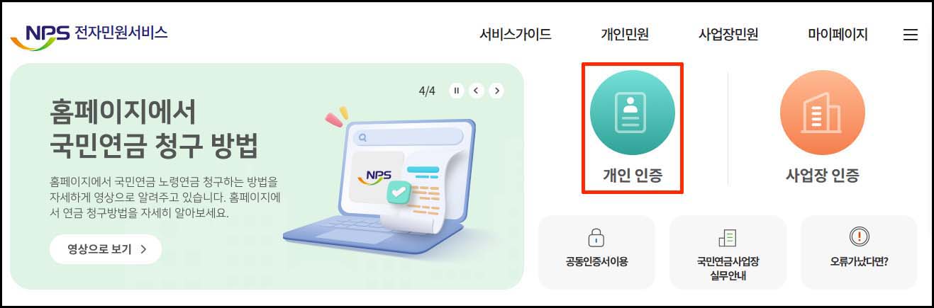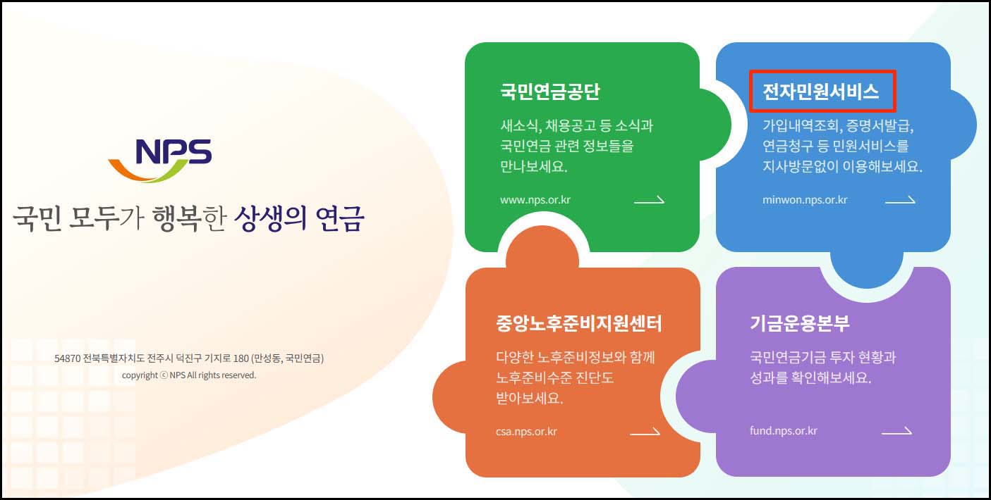 1. 국민연금공단 홈페이지에 접속합니다.