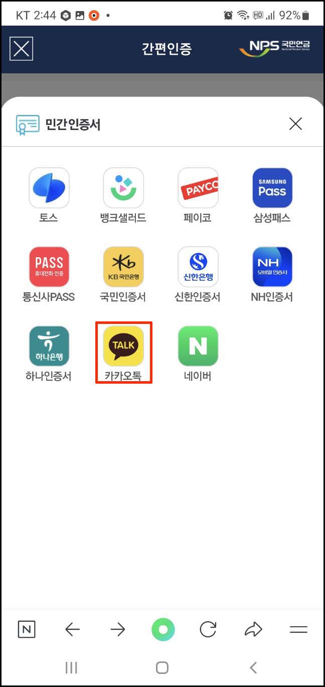 6. 저는 간편 인증 로그인 중 카카오톡 인증서로 로그인하겠습니다.