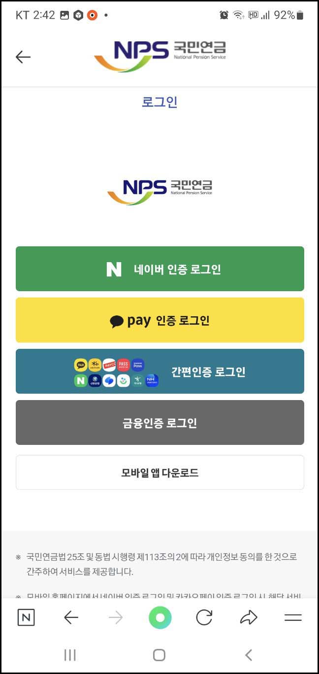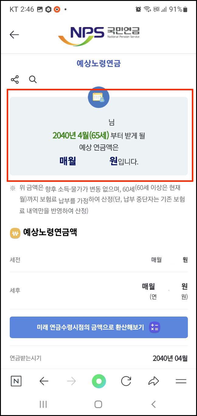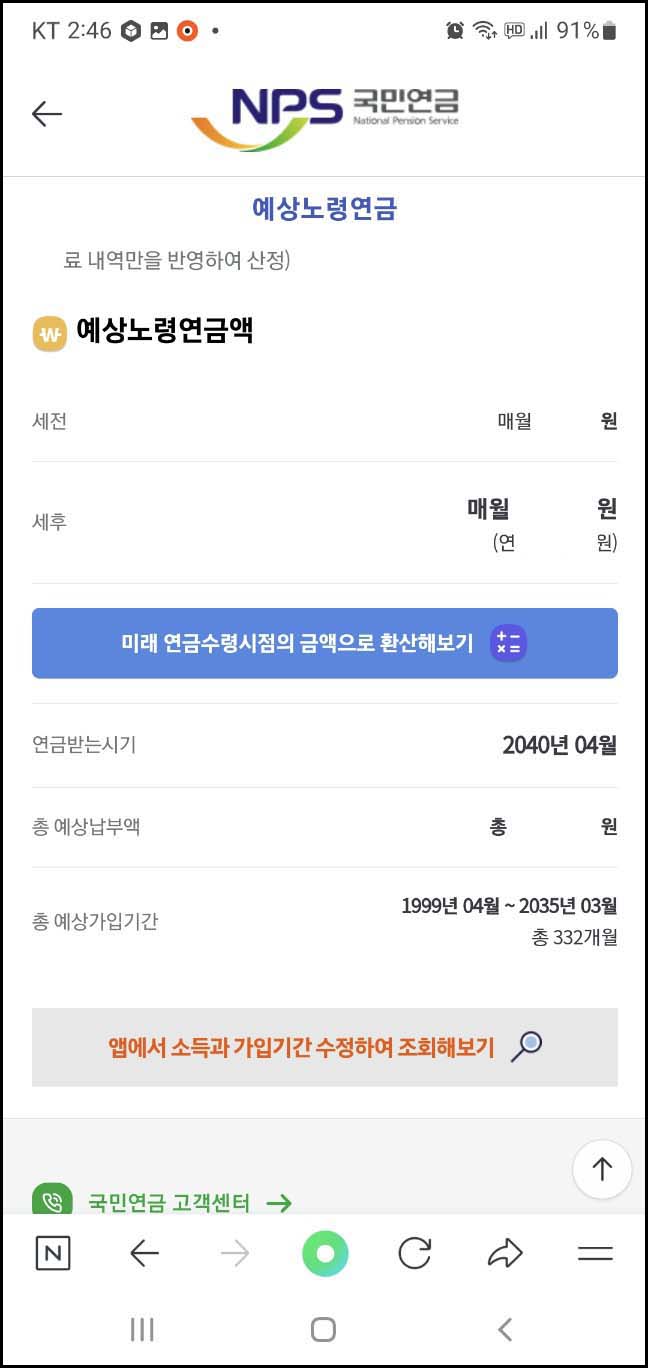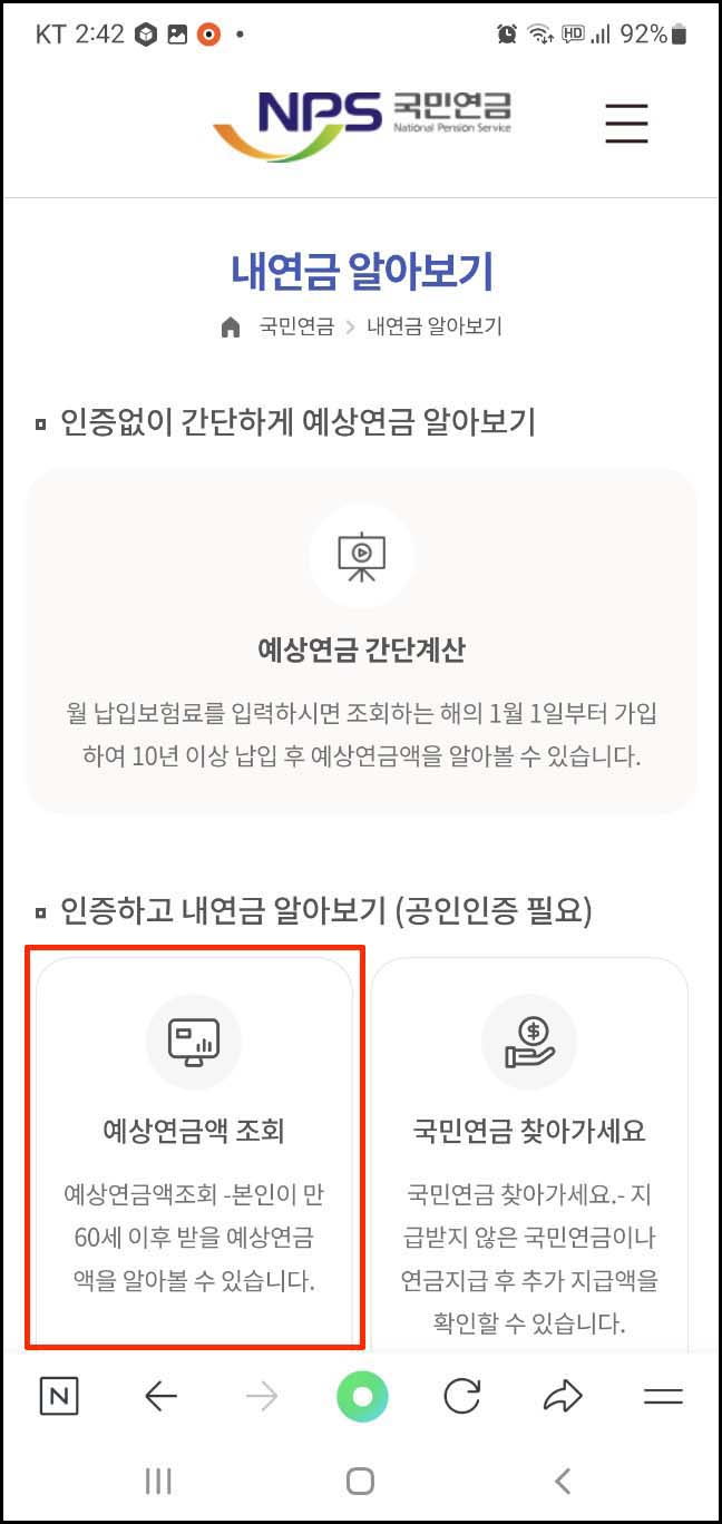국민연금 예상수령액 모바일 조회