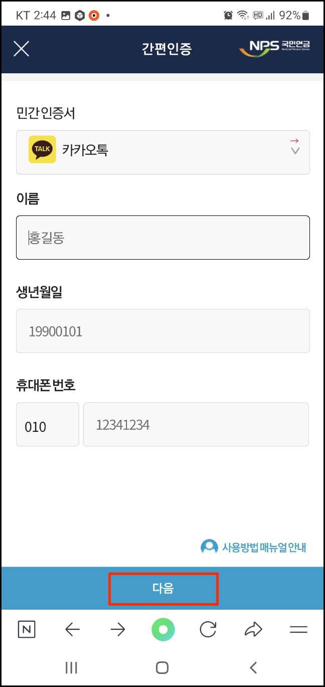 7. 이름, 생년월일, 휴대폰 번호를 입력 후 다음을 눌러주세요.