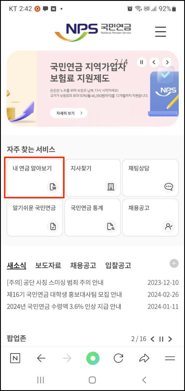 1. 국민연금공단 검색 후 홈페이지에 접속합니다.