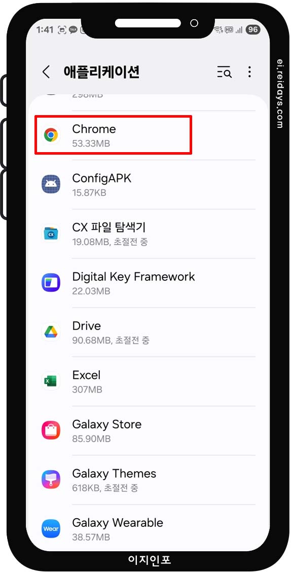 - 설정 → 애플리케이션 (또는 앱 목록)