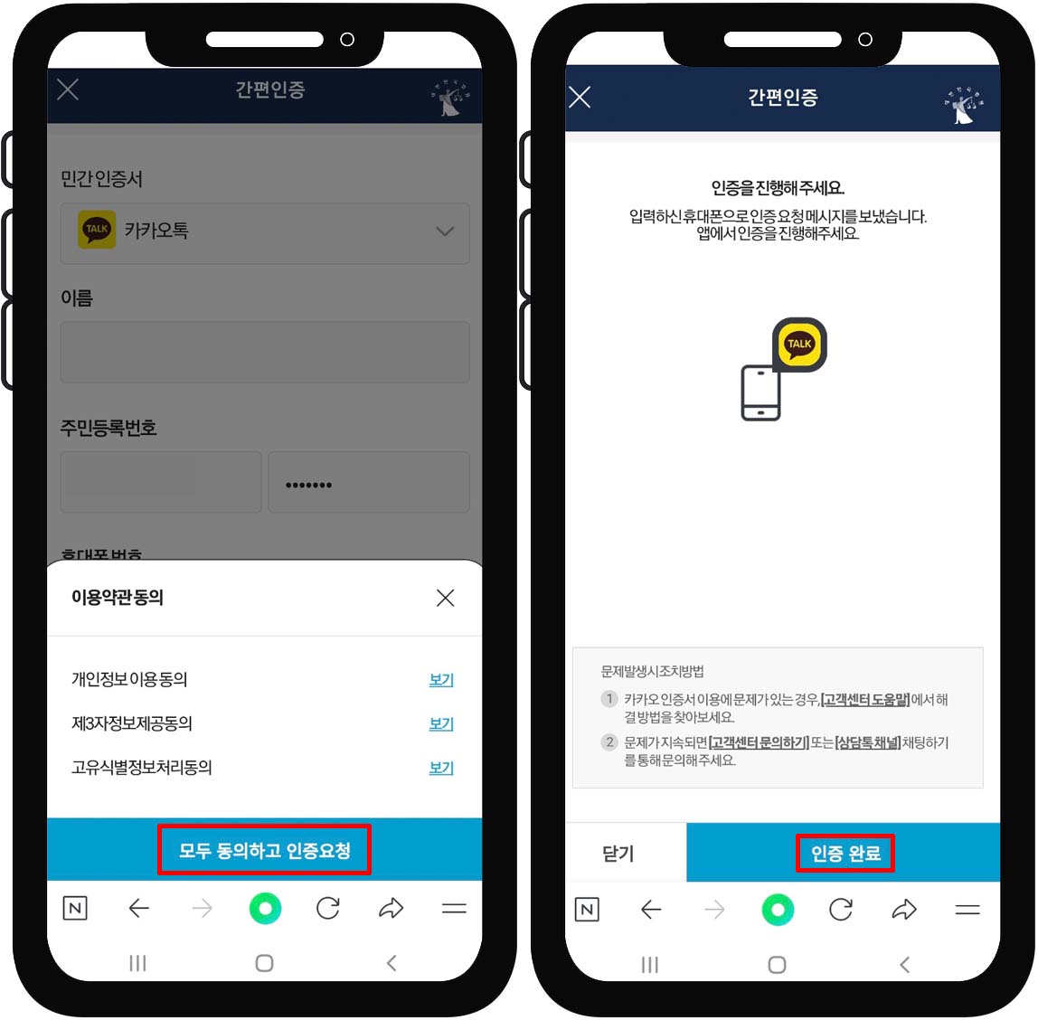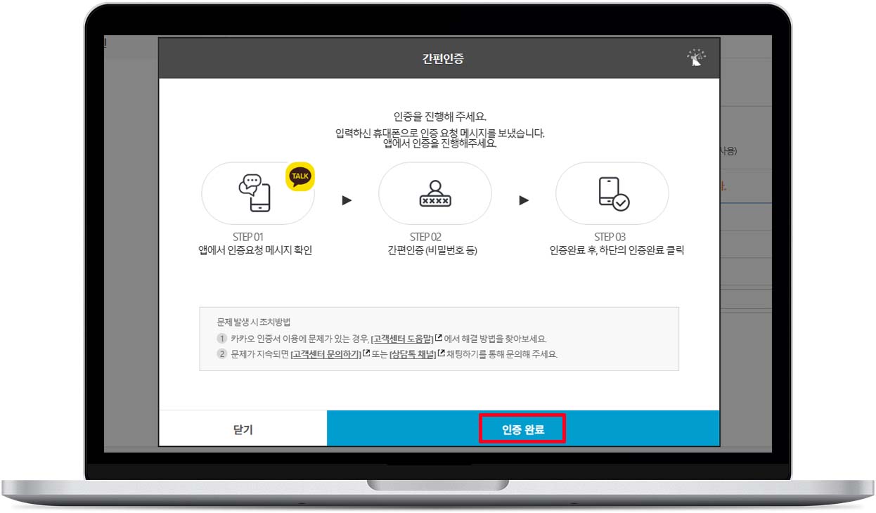 9. 카카오톡에서 인증 확인 후 "인증 완료" 클릭