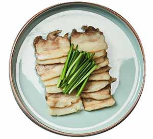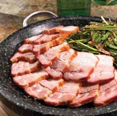 - 삼겹살을 구운 뒤 부추를 넣어 살짝 볶아낸 요리.
