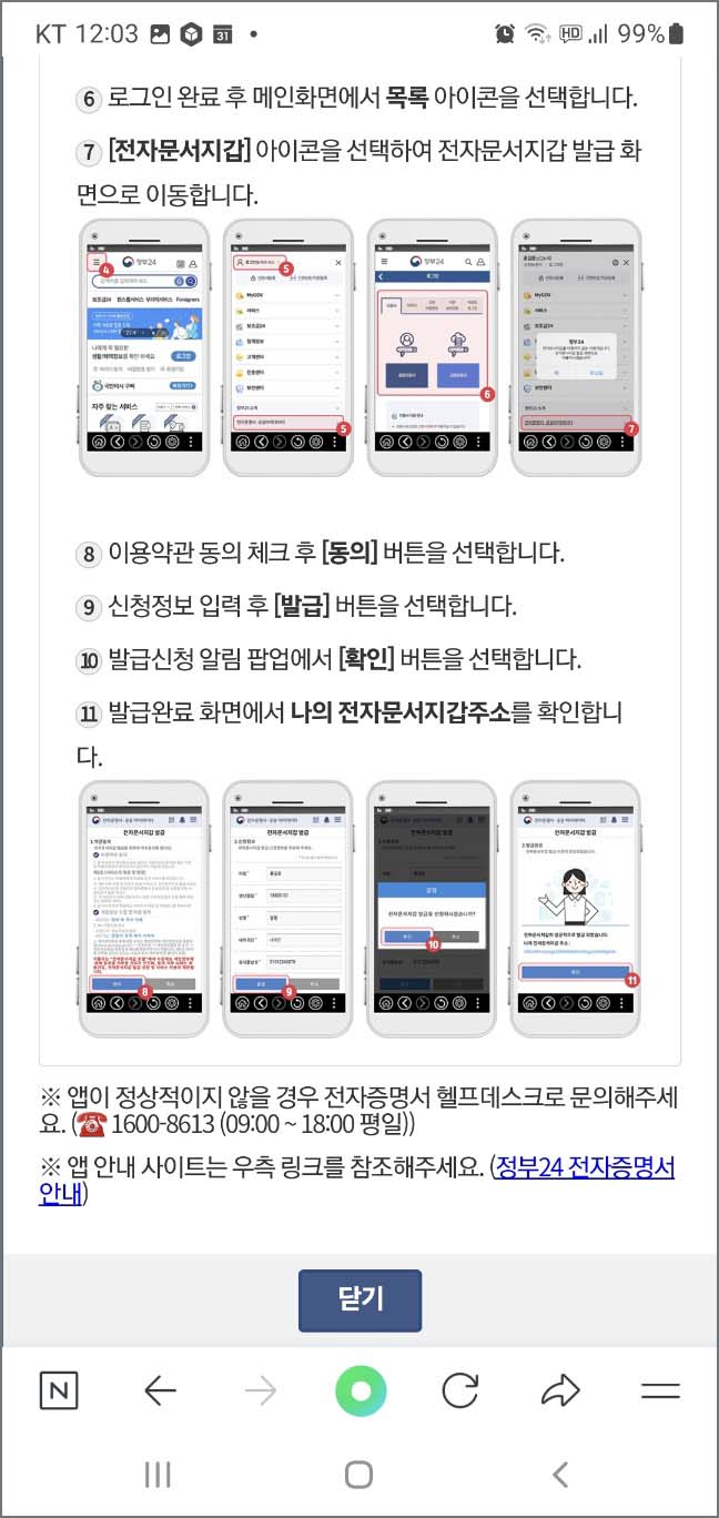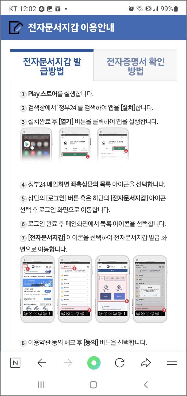 - 전자문서 지갑 : 정부 24 앱 설치 후 사용 가능