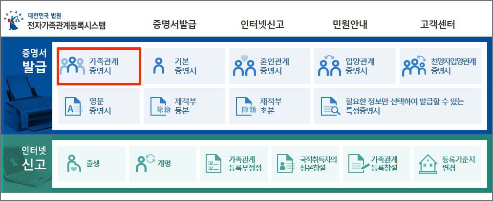 가족관계증명서 인터넷 발급 - 대법원 전자가족관계 등록시스템