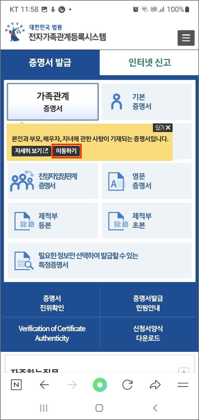 가족관계증명서 모바일 발급 - 대법원 전자가족관계 등록시스템