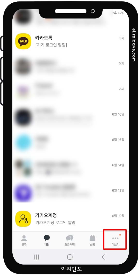 1. 카카오톡 실행 > 더 보기 (... 버튼) 클릭