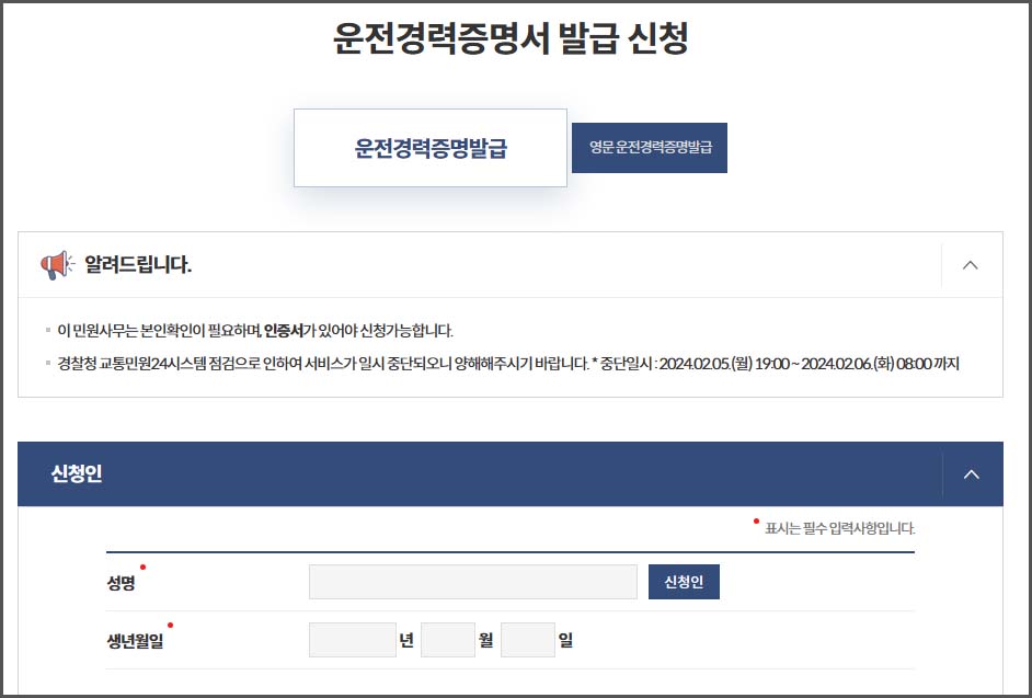 운전경력증명서 온라인 발급 - 경찰청 교통 민원 24 (이파인)