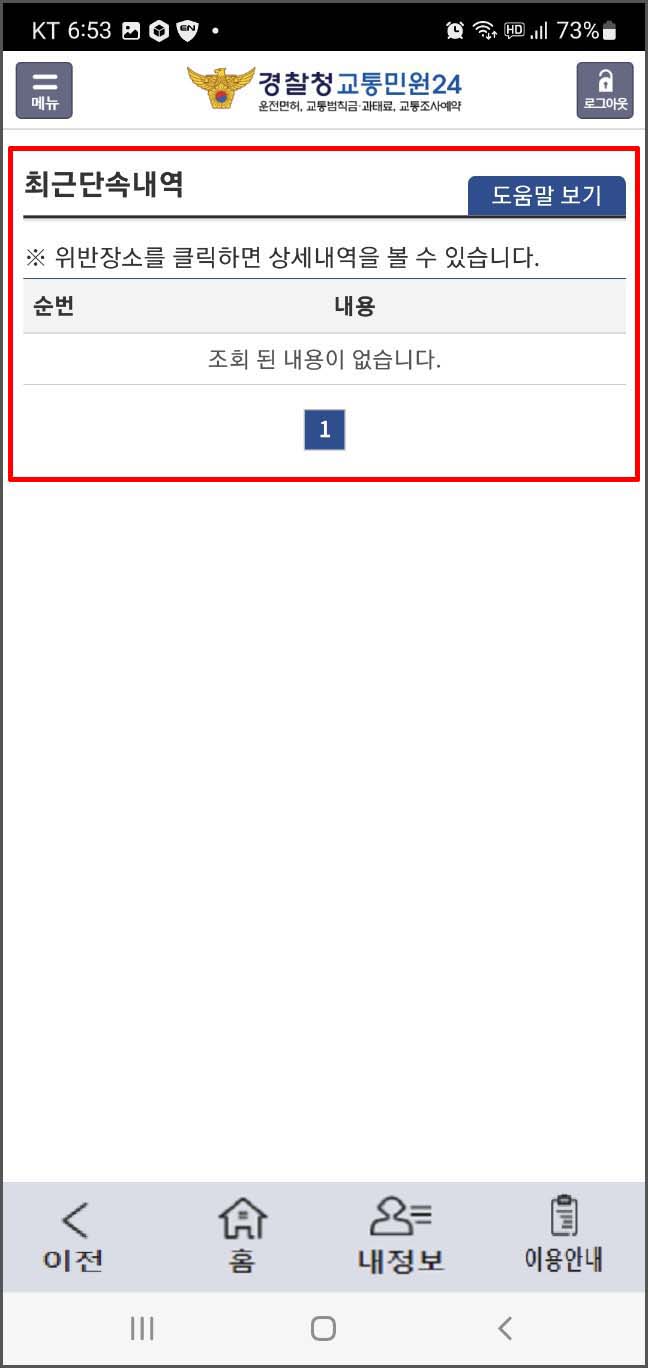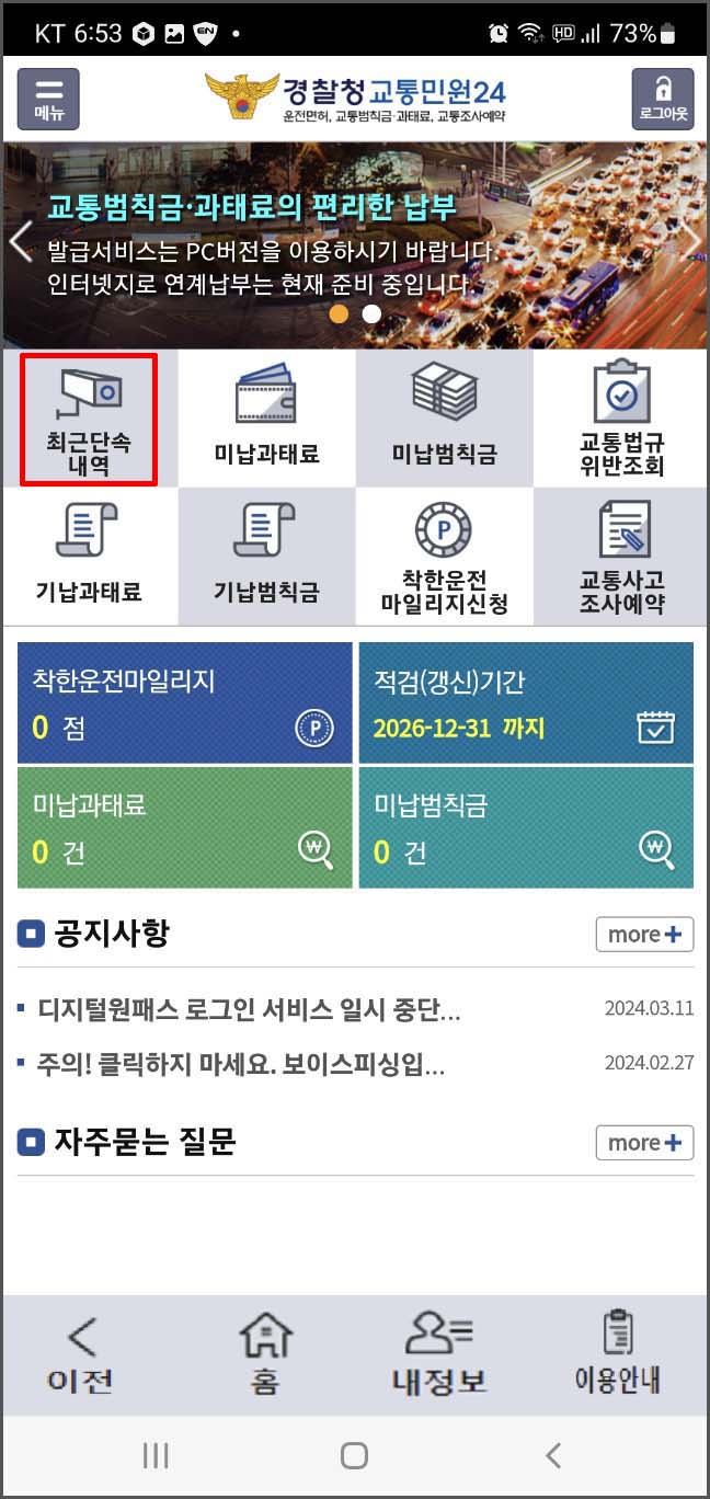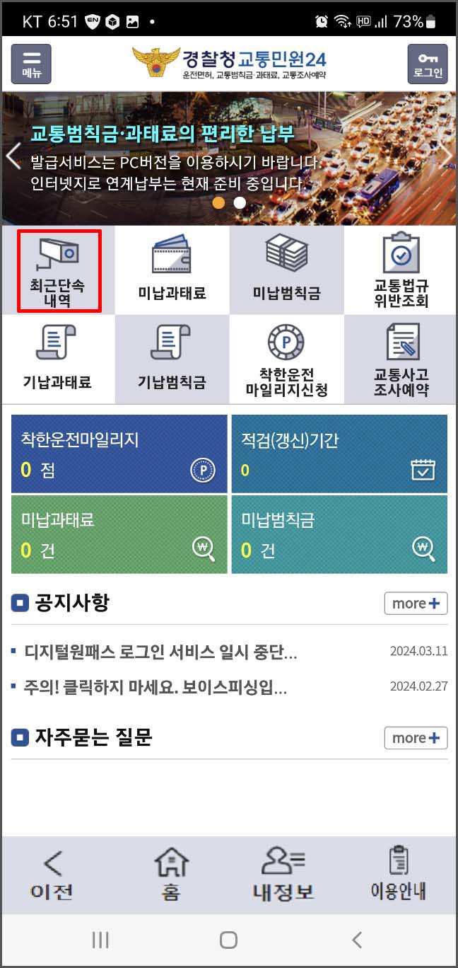 속도위반 최근 단속 내역, 미납과태료, 미납범칙금 모바일 실시간 조회 - 교통민원 24(이파인) 모바일 앱