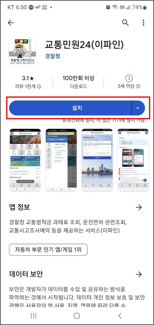 1. 교통민원 24(이파인) 애플리케이션을 설치합니다.