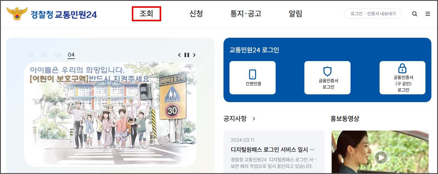 1. 경찰청 교통민원 24 홈페이지에 접속합니다.