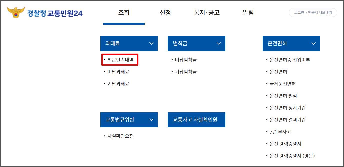속도위반 과태료 인터넷 실시간 조회 - 경찰청 교통민원 24(이파인)