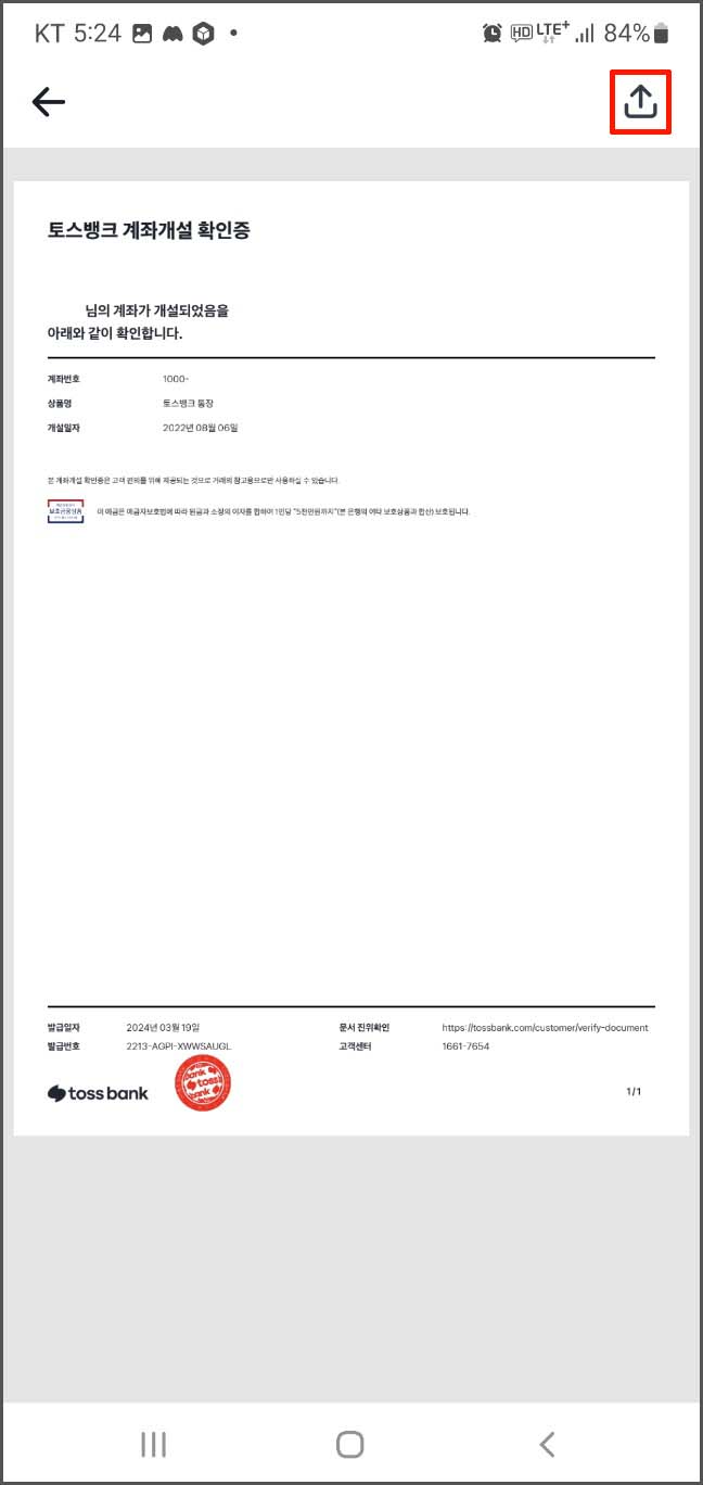 토스뱅크 통장사본 모바일 발급 및 저장, 출력하는 방법