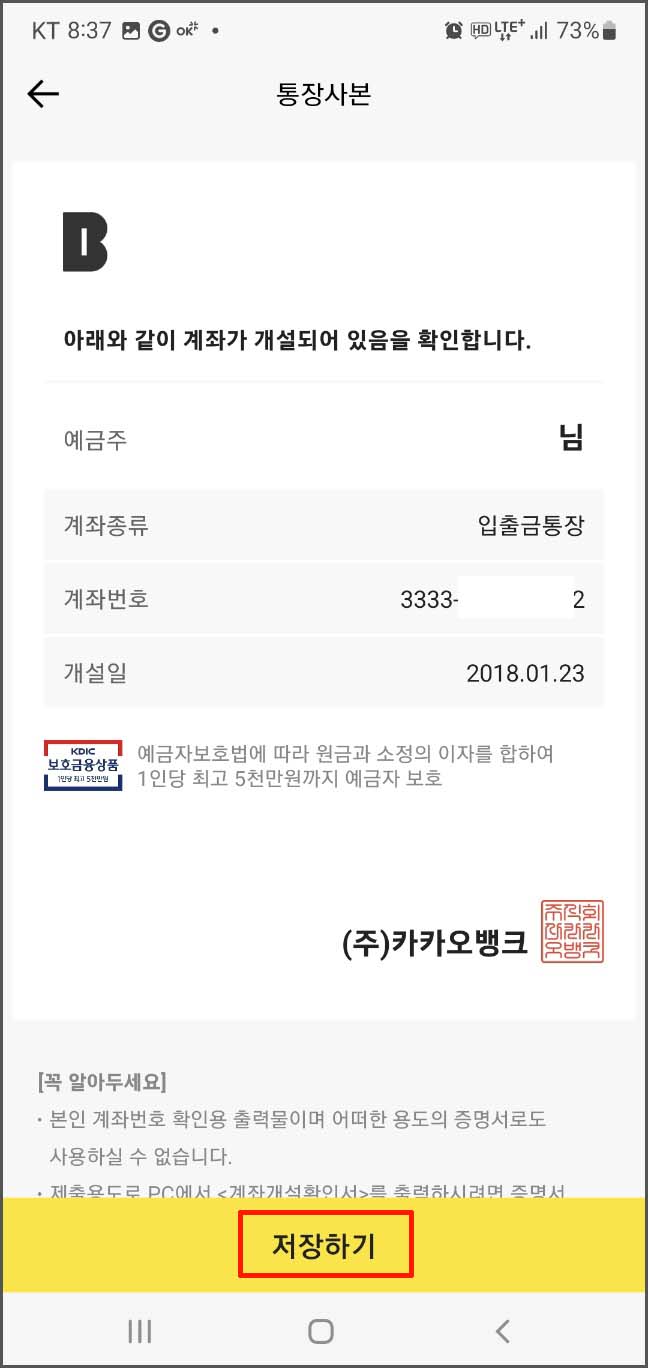 카카오뱅크 통장사본 모바일 발급 및 저장하는 방법