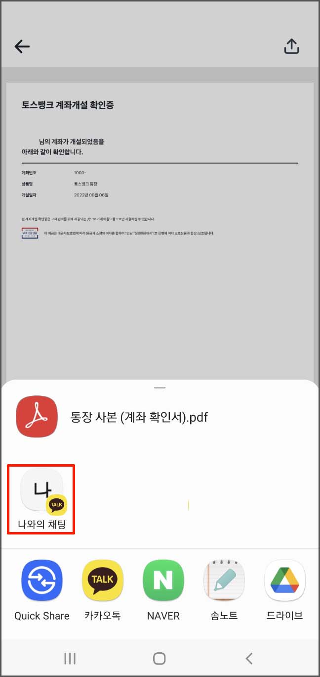12, PC에 카카오톡 메신저가 설치되어 있다면 파일 보내기를 선택하고 나와의 채팅을 선택해서 PDF 파일을 보낸 후 바로 출력하면 됩니다.