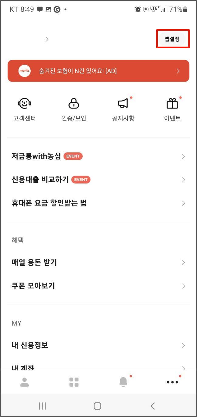 18. 오른쪽 상단 앱 설정을 선택해 주세요.