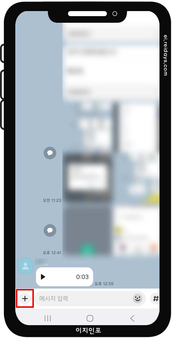 - 메시지 입력창 옆 '+' 버튼을 선택하세요.