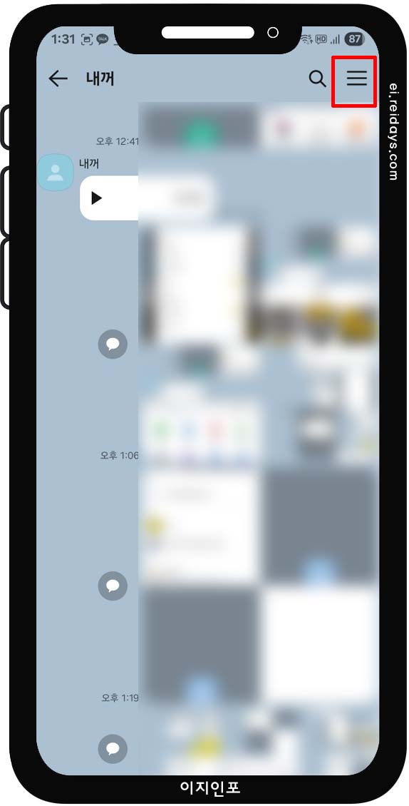 - 채팅방 우측 상단 메뉴 > '찾기' 클릭!