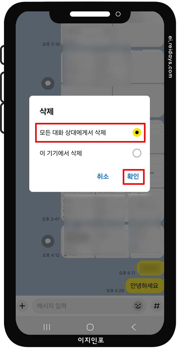 3. '모든 대화 상대에게서 삭제'를 선택 후 '확인'을 눌러주세요.