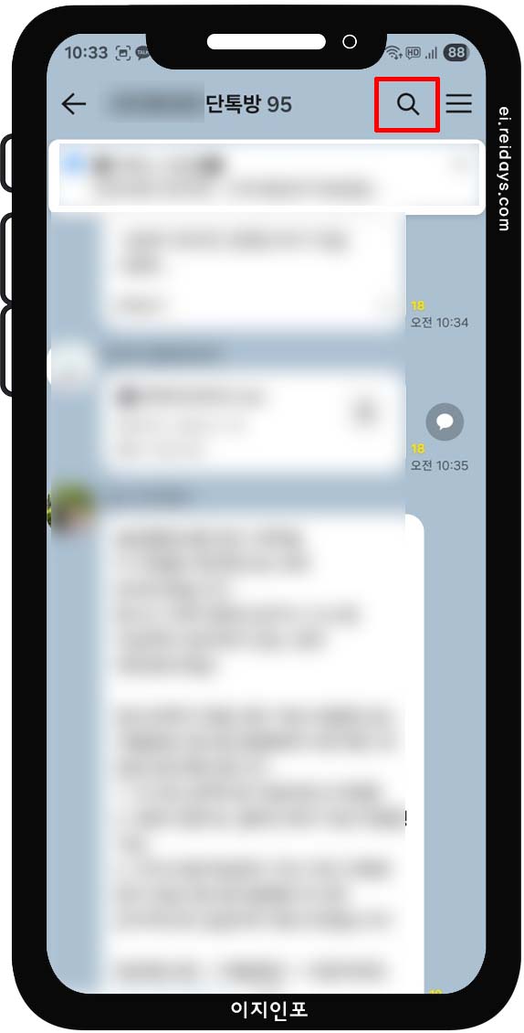- 채팅방 오른쪽 상단의 돋보기 모양 '검색' 버튼 클릭
