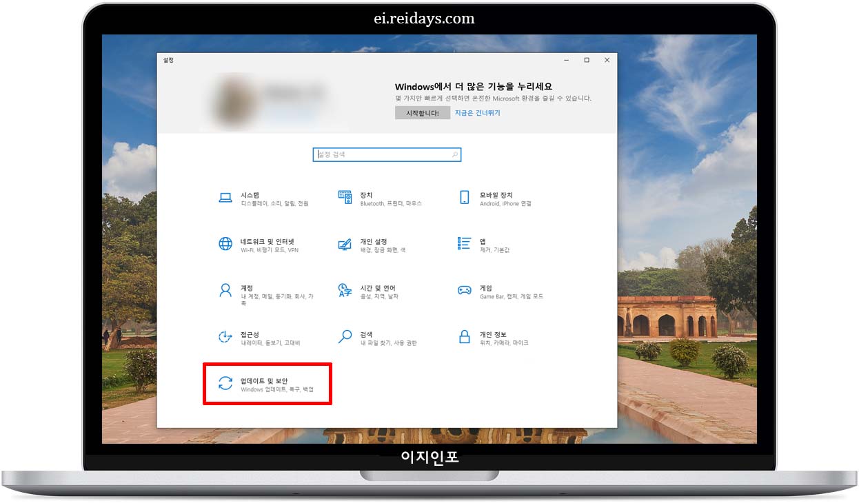 2. 설정 창이 열리면 맨 아래 "업데이트 및 보안"을 클릭하세요.