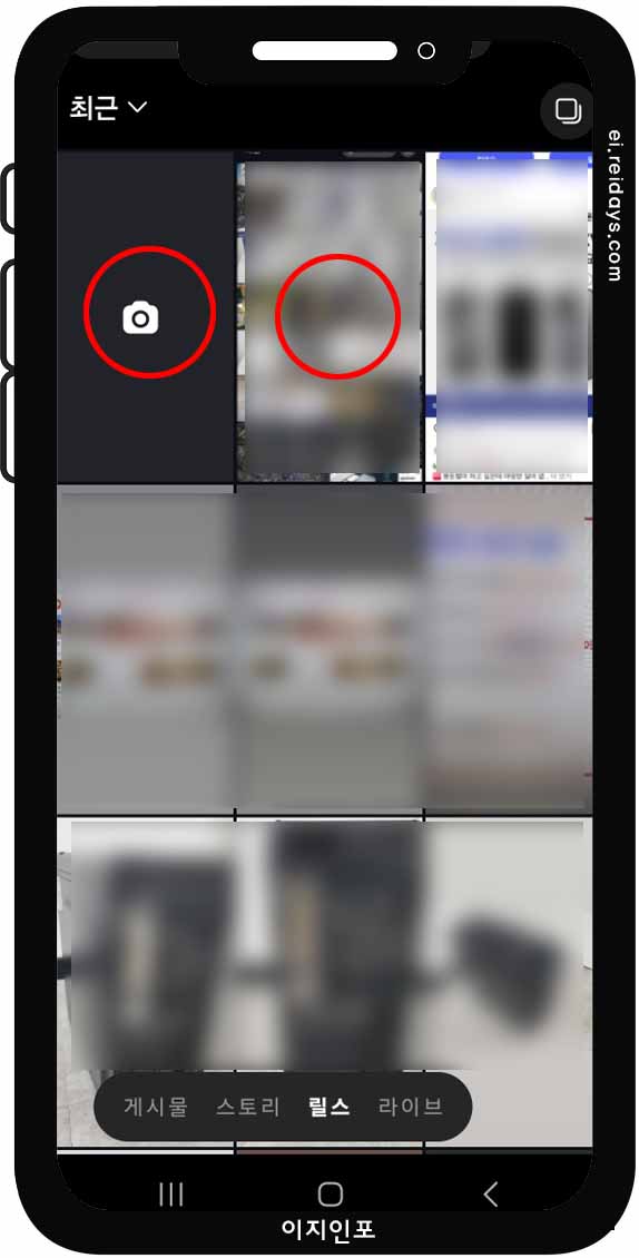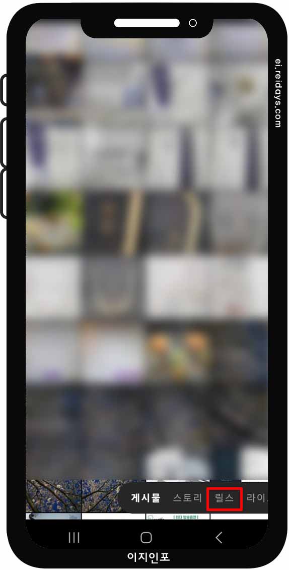 3. 오른쪽 아래 "릴스"를 선택한다.